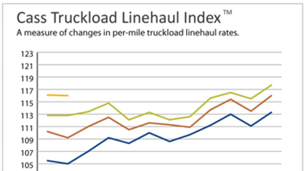 Truckload linehaul rates in November were 1.8% above the same month last year, according to the latest Cass Truckload Linehaul index.