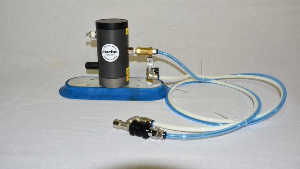 An air-powered vibrator is helping bulk carriers empty their hopper trailer loads faster and more safely by agitating settled materials and energizing flow, while discouraging common but potentially dangerous manual tactics.